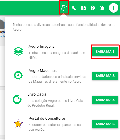 Ao ativar o Aegro Imagens, serão carregadas imagens de até 30 dias anteriores ao início da safra a qual está verificando.
